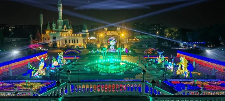嘉年华游乐区吸引了大小孩童在其中蹦跳